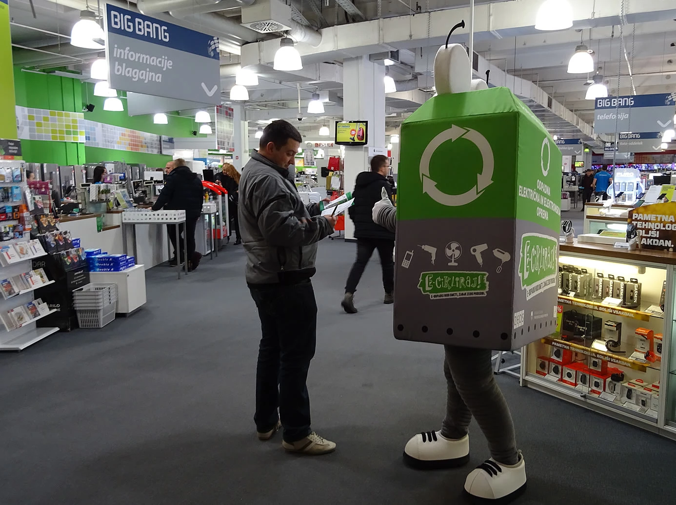 V četrtek, 1. februarja, smo obiskali Gorenjev Studio v Kopru, v petek 2. februarja smo E-ciklirali v ljubljanskem Merkurju v BTC City-u, sobota (3. februarja) pa je bila rezervirana za M Tehniko v Žalcu in Big Bang poslovalnico v mariborskem Europarku. Na dogodkih smo predstavljali naše zelene kote, ki so namenjeni oddaji starih aparatov, predstavljali pa smo tudi našo novo zbiralno akcijo Stari aparati za otroški smeh, v sklopu katere lahko potrošniki oddajajo svoje e-odpadke tekom celega letošnjega leta za Društvo Rdeči noski.