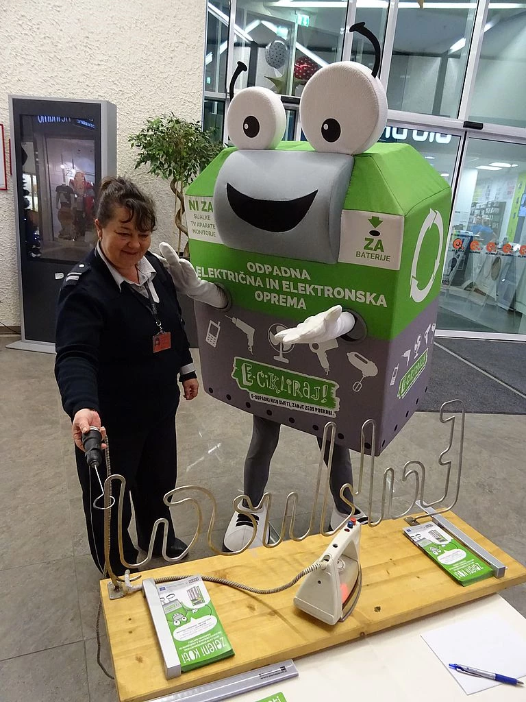 Potrošnikom smo predstavili naše zelene kotičke, v katere lahko tekom celega leta oddajajo svoje stare aparate, sijalke in baterije. ECI je marsikaterega obiskovalca trgovine spravil v smeh in jim tako polepšal dan. Sicer pa so se vsi takratni obiskovalci trgovine seznanili tudi z informacijami, zakaj je ločevanje teh odpadkov tako pomembno.